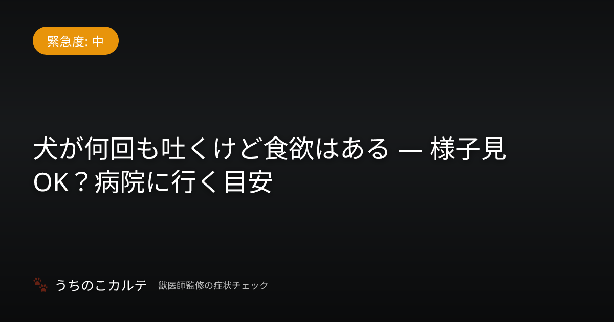 「何回か吐いたけど、ご飯はいつも通り食べた」「吐いた後もシッポを振って元気そう」——そんな状況に遭遇した飼い主さんが最初に思うのは「食欲があるなら大丈夫かな?」ということではないでしょうか。しかし食欲の有無だけで安全を判断するのは危険です。この記事では、繰り返す嘔吐と食欲の関係、受診の正確な目安を解説します。