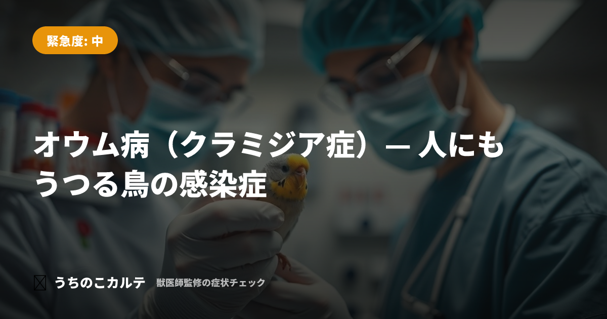 オウム病は Chlamydia psittaci(クラミジア・シッタシ)という細菌が原因の感染症です。鳥からヒトにうつる人獣共通感染症として知られており、鳥を飼う上で必ず知っておくべき病気のひとつです。