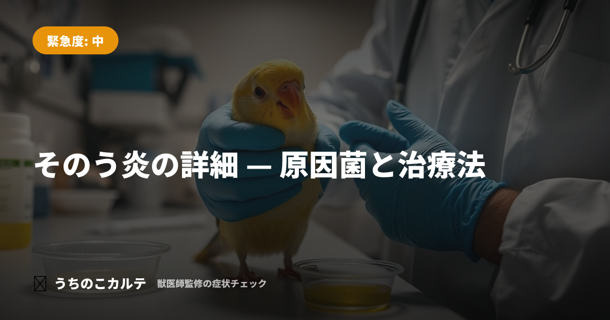 そのう炎は鳥の「そのう」に感染や炎症が起きる疾患です。原因となる病原体によって治療法が異なるため、正確な診断が重要です。ヒナや若鳥では特に注意が必要な病気です。