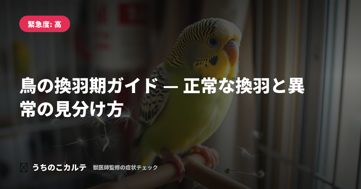 換羽(かんう)は鳥が古い羽を落として新しい羽に生え変わる自然な過程です。しかし、換羽は鳥の体に大きな負担がかかる時期でもあり、異常な換羽は病気のサインであることがあります。