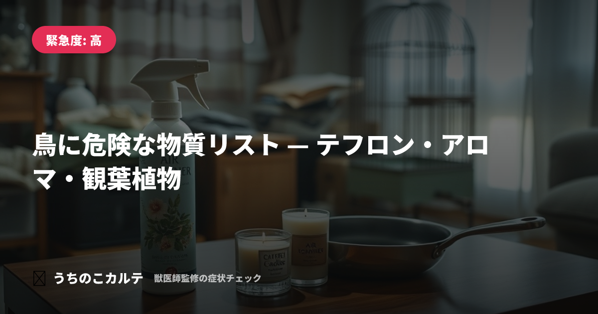 鳥は体が小さく呼吸効率が極めて高いため、人間や犬猫には無害な物質でも致命的な中毒を起こすことがあります。鳥を飼い始めたら、まず身の回りの危険物を把握して排除することが大切です。